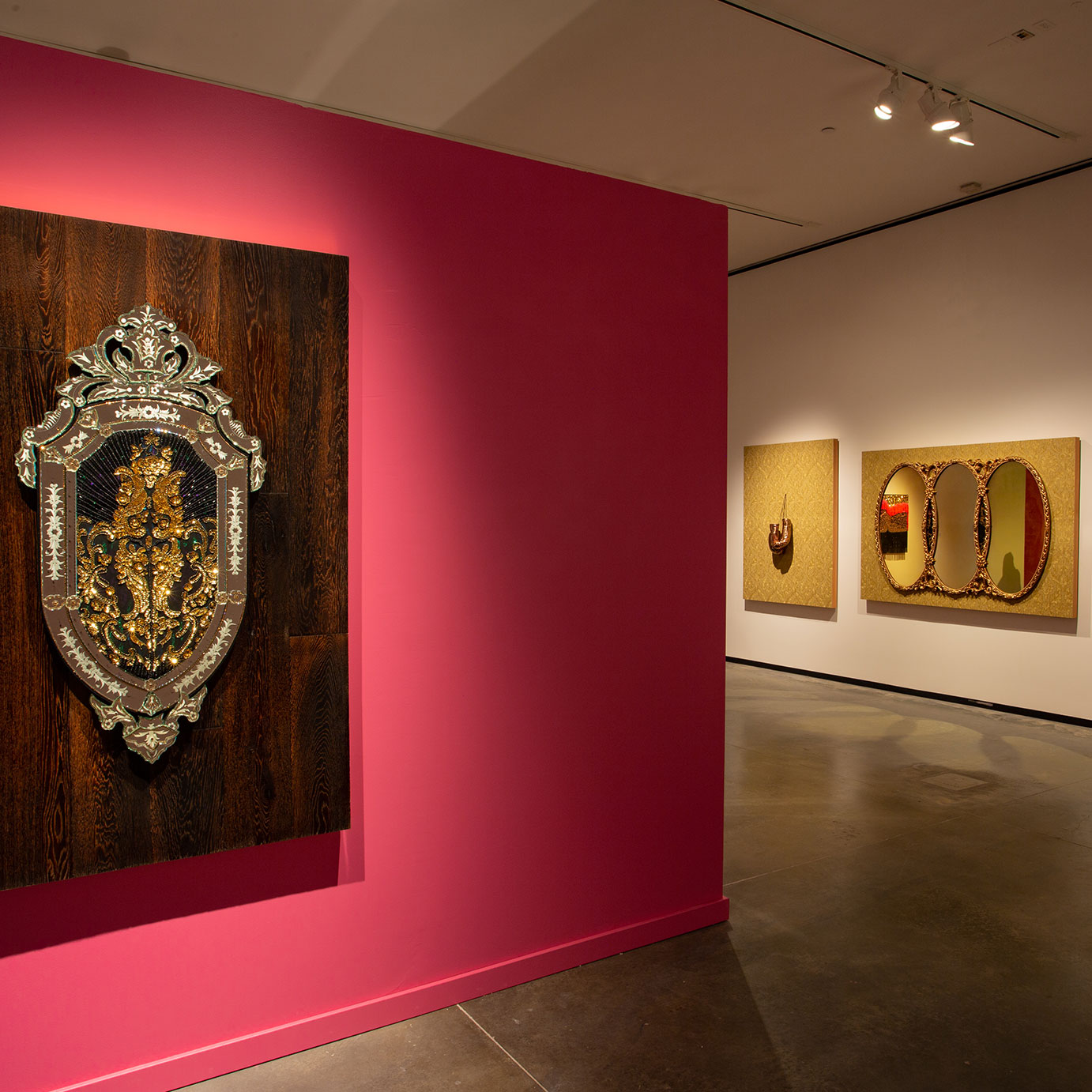 Carlos Rolón's studio practice investigates craft, ritual, beauty and its relationship to art history, subculture, appropriation and the institution. As a first-generation immigrant of Puerto Rican descent, the artist creates objects questioning the concept of luxury and craft making to explore questions of identity, integration, and aspiration. His work also represents a detailed examination of curiosity and the process of art making and the cultures surrounding this. The work often addresses his biography by melding memory and the imaginary. The artist often channels this approach with site-specific installation work, vivid large-scale paintings and ornate sculptures in various materials expanding on ideas of self-reflection and imagined luxury. The works ultimately produce a hybrid language of social practice, painting, and sculpture inviting the viewer to engage in discourse and discussion.