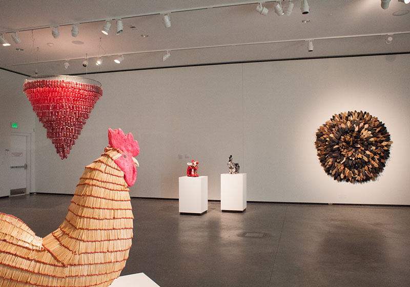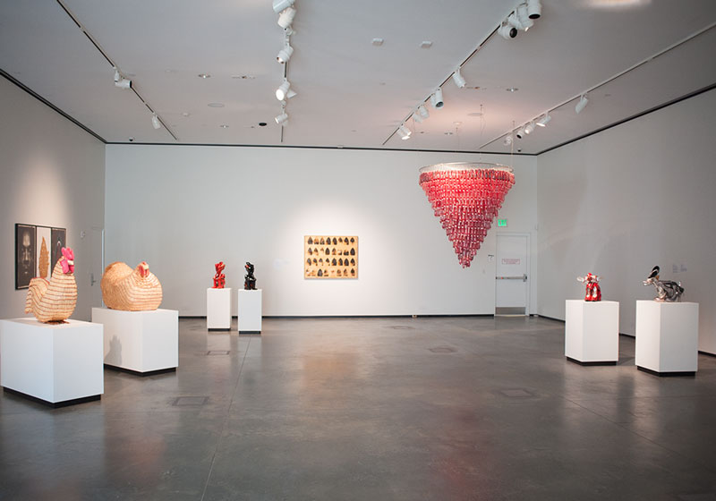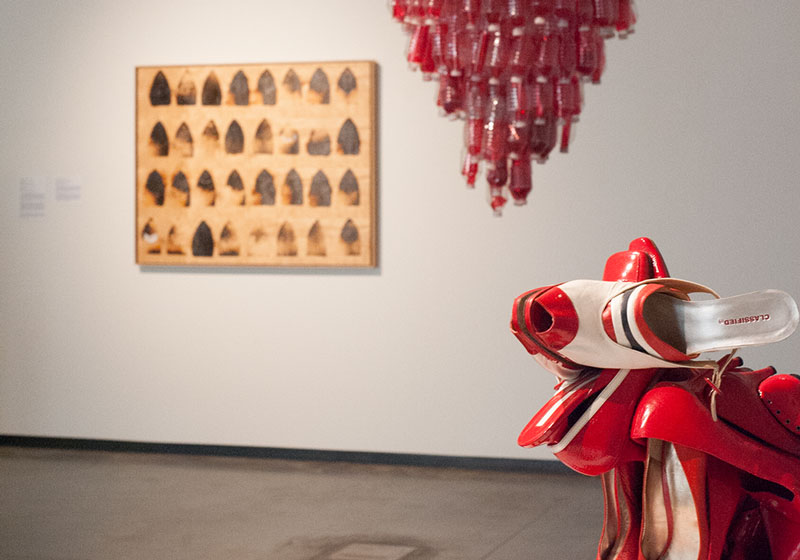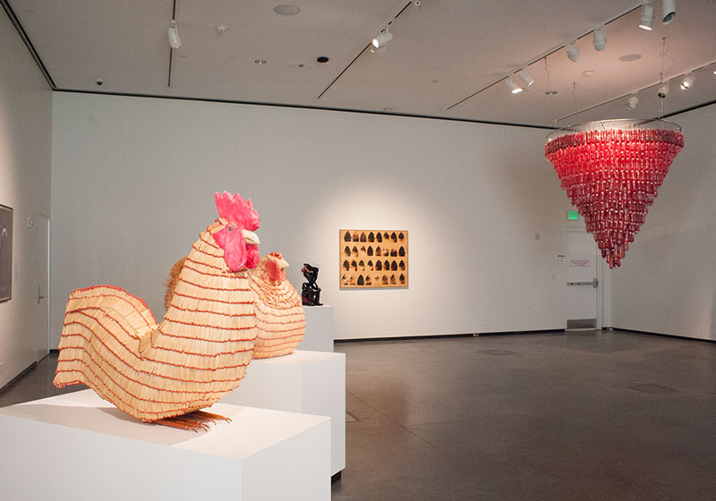 Showcasing over fifteen works created between 1996 and 2015, the exhibition investigates the artist’s transformation of everyday objects, ready-mades, and throwaways into works of multi-layered autobiographical, art-historical, and socio-political meaning. Featuring a selection of works drawn from Birmingham collections, the exhibition also includes the artist’s large-scale work Red Spirit Light, a suspended chandelier-like form comprised of red water bottles. Red Spirit Light evokes the psychological and spiritual force of light and the color red, while also commenting on our throwaway culture of ever-proliferating plastic discards.