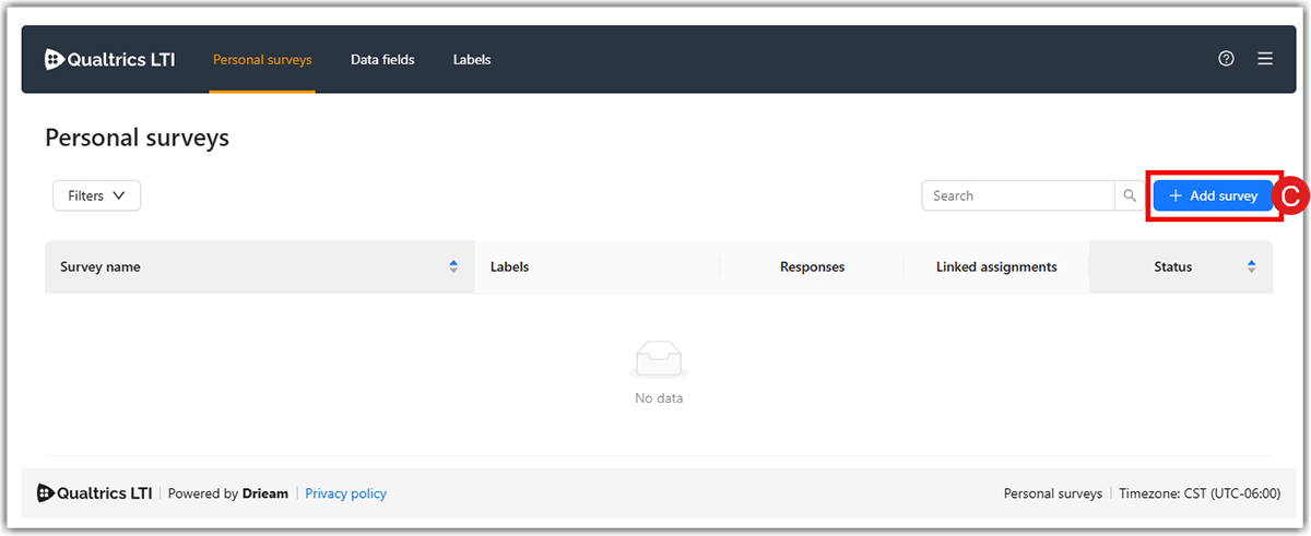 2. Click on the add survey (C) button.