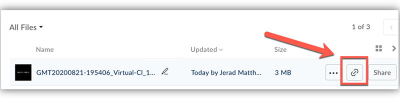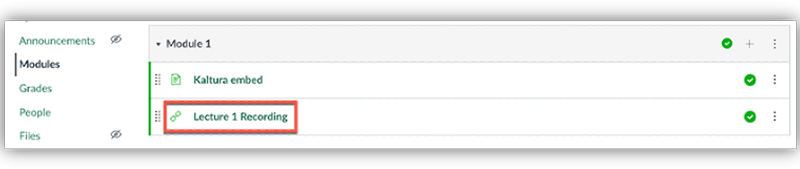 You can hyperlink the link in a page so that you can provide context or other files along with the recording as shown below. You can also add this page your modules.