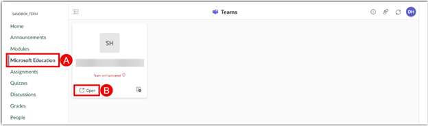 - To enter a new TeamsGroup, click Open (B) and you can access any teams class that is currently active on your dashboard.
