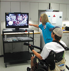 The Wii is only one tool in the lab. Primarily funded by a grant from the Christopher and Dana Reeve Paralysis Foundation, the lab offers nearly every device available to help patients with limited mobility learn to become more independent and make efficient use of their efforts in their daily lives.