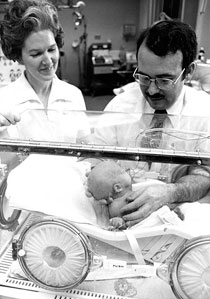 In the 1960s and ‘70s, George Cassady, M.D., led the fight against Alabama’s infant mortality. An SOM pediatrics professor and director of UAB’s high-risk nursery, he developed one of the country’s most advanced neonatal programs, ensuring that it utilized the latest procedures and technology. Cassady also shared that lifesaving knowledge with hospitals around Alabama, encouraging them to create their own intensive-care nurseries. A premature baby born in a hospital without a neonatal intensive-care unit has about twice the mortality risk of a baby born in a hospital with one, Carlo explains.