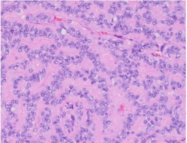 A 45-year old man with a history of PTC, tall cell variant (PT3b N1a M0), s/p total thyroidectomy, central neck lymph node excision and radioactive iodine therapy, presents with new neck mass. Figures a & b show FNA of the mass.