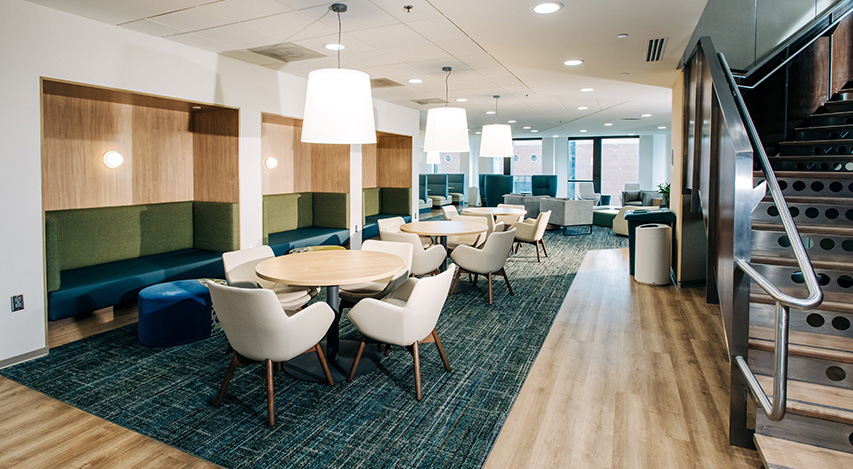 The Volker Hall Atrium is the latest milestone in a line of renovation efforts, including its new Active Learning Center, student relaxation spaces, refreshed Medical Student Services suite and a refresh to its lecture halls currently in progress.