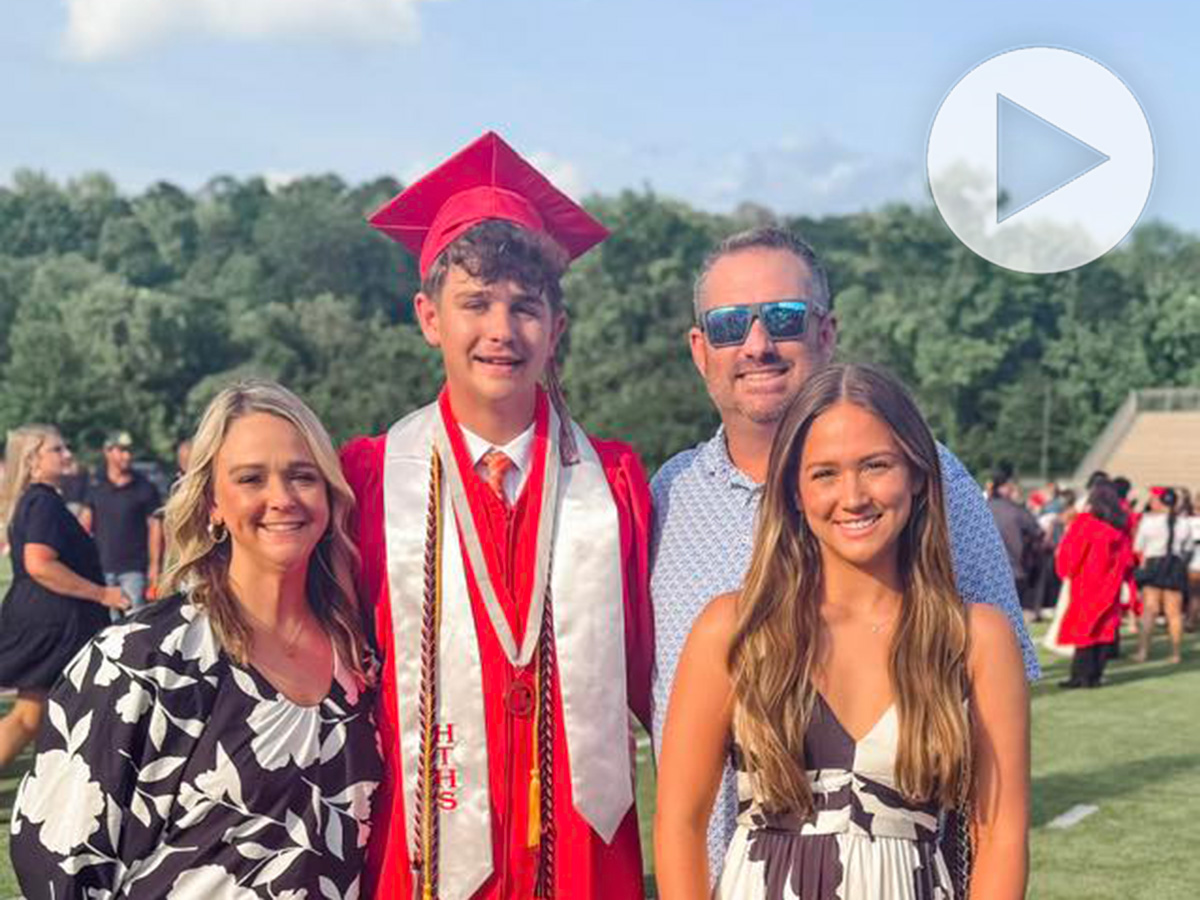 More than two years ago, 19-year-old Grayson Pope was fleeing a pop-up storm while playing golf with friends when a large tree collapsed on his golf cart. He suffered hundreds of brain bleeds, brain stem damage and swelling on his brain.