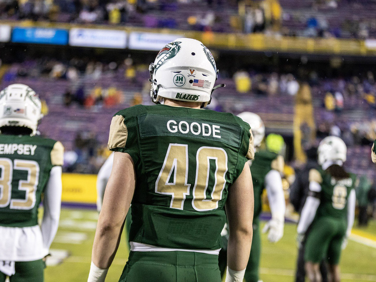 Goode’s high school coaches, who were well-connected to the UAB football staff, arranged his meeting with UAB’s offensive coordinator. Goode’s impressive portfolio and fire for the sport secured him a position as an inside linebacker and starting on UAB’s special teams.