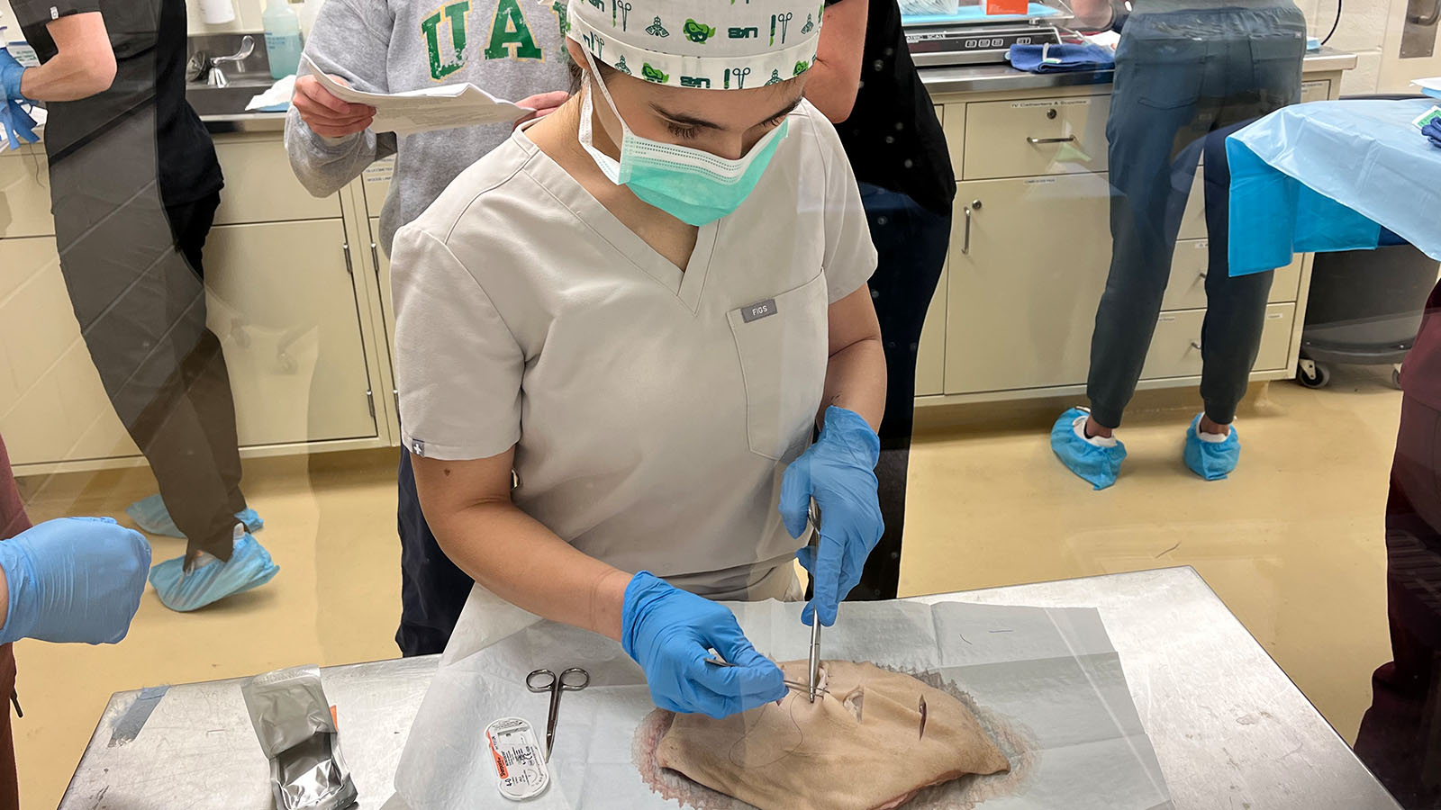 Includes hands-on instruction in surgical knot tying and suturing, performing minor surgeries under local anesthetic, vessel ligations, utilization of negative pressure wound therapy, and inserting central lines under ultrasound guidance. -