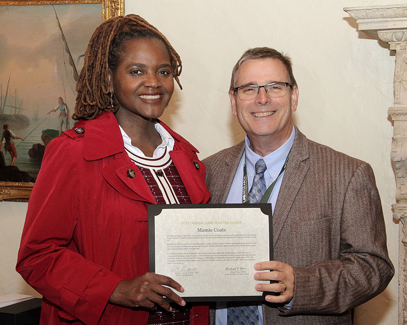 On October 28, 2025, Mamie Coats, Biomedical and Health Sciences co-director, received the UAB Faculty Senate award for Outstanding New Senator.